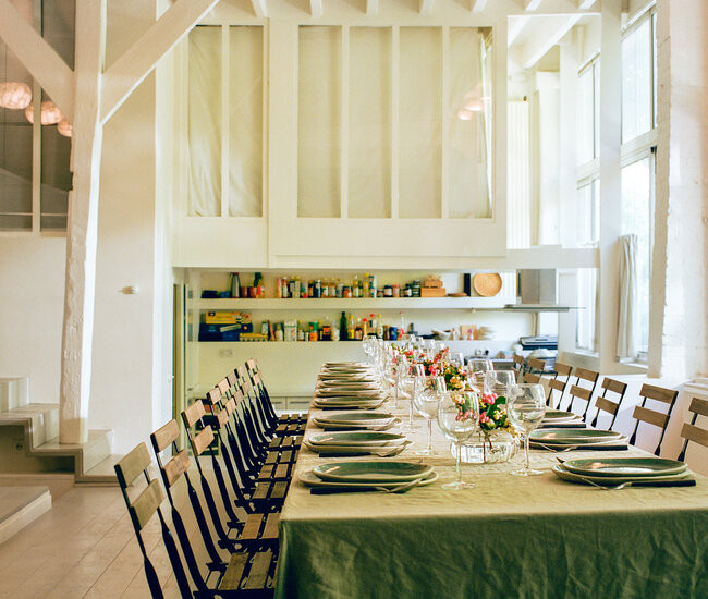 At her new space — in a vine-covered cobblestone mews off a quiet block — she’ll focus on invitation-only events, leaving herself plenty of time for research and sourcing trips to places like Majorca, where she found the painted pottery that today is laid out on the long communal table that accommodates 30. Diners will have views of the open kitchen, and of the shelves of kitchenware and ingredients, some for sale, like olive oil, homemade jams and colorful Japanese table linens. Upstairs is a tatami room for tea ceremonies, where Singh will host tea masters visiting from Japan.