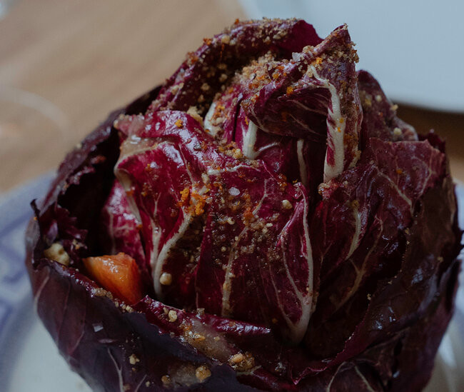At the start of this year, the celebrated Danish chef Frederik Bille Brahe, 40, closed down Apollo Bar & Kantine, his beloved art-world hangout in the courtyard of Copenhagen’s Kunsthal Charlottenborg, in order to reinvent the space and its menus. He and his executive chef, Yuta Kurahashi, 36, shifted their focus to dinner and now serve an evening meal of pared-back dishes that riff on seasonal ingredients. But if Bille Brahe likes to keep things simple, he also enjoys surprising his guests. The dish he calls Salada Rosso presents as an untouched head of radicchio but it is, in fact, a clever piece of trompe l’oeil: the chicory has been deconstructed, its bitter leaves coated with a rich, earthy black garlic and almond cream and a sweet citrus vinaigrette, then reassembled with chunks of tart blood orange tucked between them. Radicchio, Bille Brahe says, is a vegetable “most people think they don’t like — but then you make something with it that changes their minds.” Here, he shares the recipe.