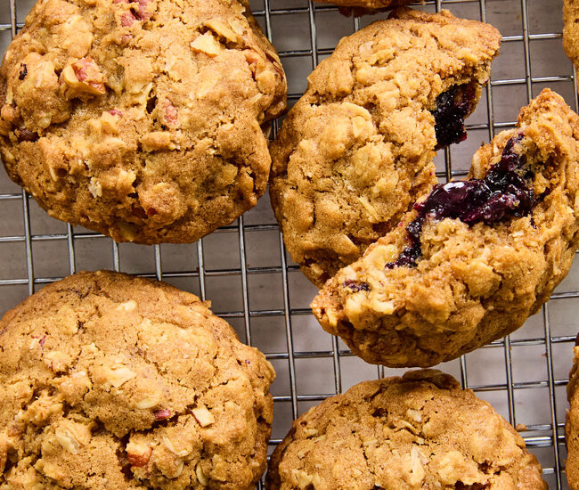 It’s not that we just tolerate oatmeal raisin cookies, nor that we think of them as a dignified second best. It’s that we would, in fact, brush past a teetering stack of fancy chocolate chunk mega-cookies to get just one nubby, chewy, dried-fruit-speckled disk of oatmeal raisin, especially if it is still soft and warm from the oven, fragrantly spiced.
