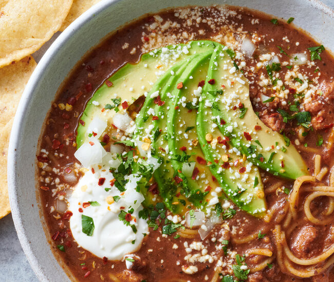 But I’ll save Rick Martínez’s sopa de fideos y frijoles con chorizo for just me. When those April showers start showering and my tax refund takes way too long to arrive, Rick’s comforting fideo and bean soup with chorizo is exactly what I’ll need. Black beans are puréed with chicken stock, canned tomatoes and spices to provide body and richness; broken-up fideo (or another thin pasta) gets a good toast before simmering in that bean-y salsa. Make a big batch on Monday and return to it on Wednesday when the week starts to weigh you down.