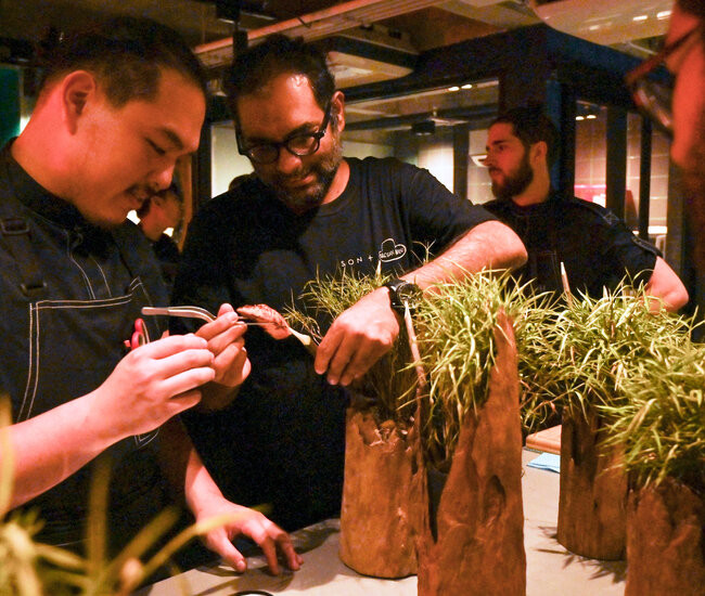 Brains are big in other restaurants on the list. Rasmus Munk, chef of the eighth-best restaurant in the world, Alchemist, in Copenhagen, pipes a mousse of lamb brains and foie gras into a bleached lamb skull, then garnishes it with ants and roasted mealworms. Another of the 50 or so courses — the restaurant calls them “impressions”— lurks inside the cavity of a realistic, life-size model of a man’s head with the top of the cranium removed.