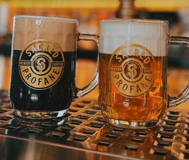 Selling only a few beers isn’t a new phenomenon. McSorley’s Old Ale House in New York City is famous for offering only two house beers on tap: one light and one dark ale. Sacred Profane Brewing in Biddeford, Maine, follows that tradition by brewing only a pale lager and a dark lager poured from copper tanks. Guests can select the amount of foam and try the beers blended or mixed with lemonade.
