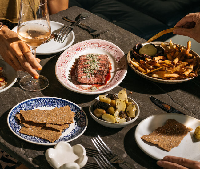 Bateau is like no other steakhouse in the United States. While it’s possible run up an expense-account-worthy tab and get a bracing martini, there are no dark wood appointments, no commodious booths. Instead, the chef Renee Erickson has taken the Pacific Northwest sensibilities of her Sea Creatures restaurant group and channeled them through this carnivorous counterpoint. There is a big chalkboard listing the day’s available steaks — when they run out of a cut, it’s erased — and less popular but no less delicious choices like the culotte and rump cap are fixtures. That’s because the restaurant uses as much of the animal as possible, and a cow carries only so many rib-eyes. In that same spirit, sides like smoked-and-spiced shank jerky and beef liver mousse optimize off-cuts and other bovine ingredients. BRIAN GALLAGHER