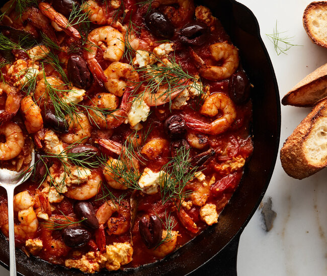 One is an awesome new recipe that my pal and colleague Alexa Weibel adapted from Carolina Doriti’s new cookbook, “Salt of the Earth: Secrets and Stories from a Greek Kitchen.” It’s for shrimp saganaki (above), so named for the small, two-handled frying pan in which it was traditionally prepared and served. A pound of shrimp cloaked in a delicate tomato sauce that’s run through with olives, ouzo and feta? Yes, please. I’d like that with bread and a glass of assyrtiko.