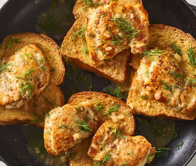 Today, for instance, behold Christian Reynoso’s new recipe for buttery skillet chicken and brioche (above), a one-pan comfort of a meal. It’s excellent — salt-and-peppered chicken thighs roasted on top of thick slices of pillowy bread, toasted and golden in some spots, soft and anointed by chicken fat in others. A simple, savory pan sauce ties it all together: butter, miso and shallots brightened with lemon juice. Top with chopped dill, and serve with some roasted green beans.