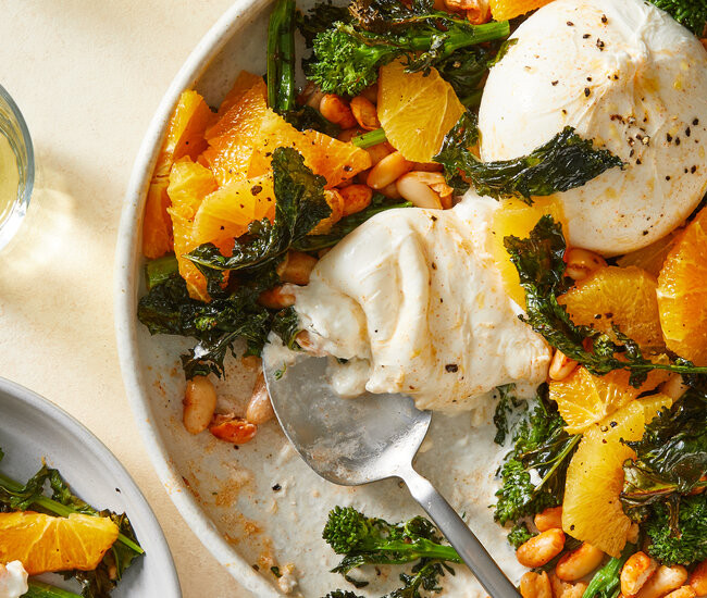 Oranges are especially delightful to cook with right now. Reach for your favorite varietal for Ali Slagle’s recipe for roasted broccoli rabe and white beans with burrata (above). The fruit’s juices mingle with the cheese’s soft center, creating what I can describe only as a slightly savory Creamsicle backdrop to the meal’s heartier components. (One reader in the comments suggested using blood oranges, which I wholeheartedly endorse.)