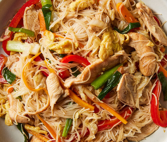 This chicken mei fun from Vivian Chan is a wonderful example of the comfort cooking we’re craving. It’s familiar (who doesn’t love noodles?), versatile (use the proteins and veggies that you’ve got) and easy (simple prep and straightforward stir-frying). A tangled heap of noodles and crisp-tender vegetables, slicked in a savory five-spice sauce, is a very comforting thing on a tired, cold January night.