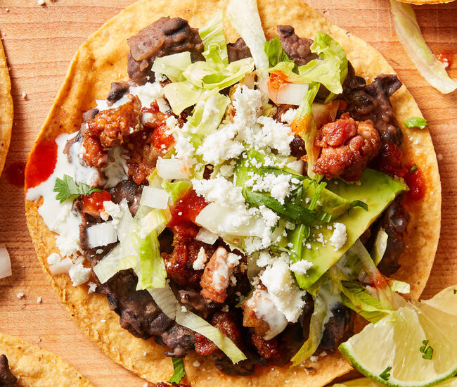 We’ll get this out of the way: You absolutely don’t need to fry tortillas from scratch for Rick Martínez’s tostadas recipe. Topped with seasoned beans, crumbles of chorizo, cheese, lettuce, cilantro and salsa, any store-bought fried tortilla will taste delicious. But if you would like to fry your own, Rick has helpful tips on how to judge when your oil is ready and what to look for in a perfectly golden, crispy tostada. Our main point here is to make this recipe whichever way you want. You won’t be sorry.