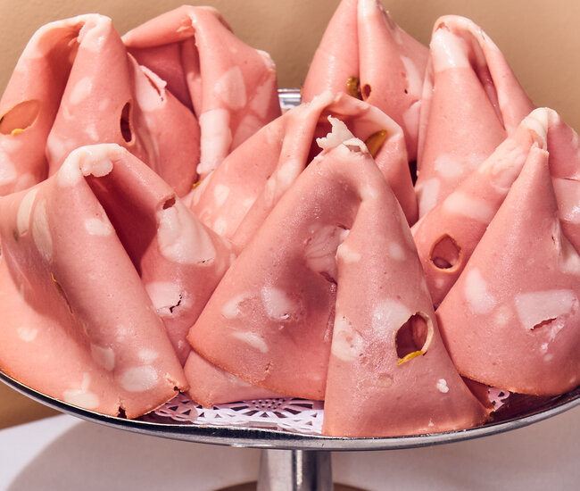 Because mortadella is cooked rather than cured, it needn’t be as aggressively salted as prosciutto, salami, and other salumi; nutmeg and white pepper give it a delicate perfume. On salumi plates at restaurants like Lodi in Rockefeller Center, mortadella balances out the saltier, drier and darker meats like prosciutto and culatello with its silky texture and pastel color scheme.