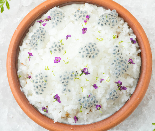 Now, though, the once-casual treat has made its way to restaurants, even fine dining. Erickson serves kiwi-flavored shaved ice atop a creamy jasmine tea custard. At Bar Maze, which offers a cocktail-paired tasting menu in Honolulu, the head chef Ki Chung, 32, combines sweet corn pudding and sesame streusel with ice shaved from the same clear blocks used for drinks — the dessert is finished tableside with a pour of black sesame orgeat. While Chung’s ice is rendered as light and ethereal as snowflakes, at Vern’s in Charleston, S.C., the chef and co-owner Dano Heinze, 40, favors a crunchy texture. In a shallow sundae glass, he creates a parfait of vanilla ice cream spiked with orange zest, a layer of orange jam, tangy crème fraîche whipped cream and a pile of orange granita — frozen orange juice sharpened with citrus vinegar and scraped with a fork — for a take on an orange Creamsicle. For Srijith Gopinathan, 46, the chef and owner of Copra in San Francisco, shaved ice is infused with nostalgia. Recalling the crushed ice of his childhood, molded into ice pops and sold by bicycle vendors in Kerala, India, his coconut crystals — coconut water, coconut milk and a touch of cardamom, all blended with liquid nitrogen — are embedded with mango gelée and candied basmati rice puffs. And at Yess in Los Angeles, the sous-chef Giles Clark, 36, creates what he calls “slightly naughty, adult interpretations” of kakigori, including a sangria version with a fruit salad that might include passion fruit and pluots, heaped with ice shaved by a hand-cranked machine and doused in red wine syrup sweetened by the ferment of fruit trimmings. Part of the fun is the dramatic dimensions of the dessert, about the size of a volleyball. “It’s quite playful,” Clark says, adding, “People finish with a smile.” — Martha Cheng