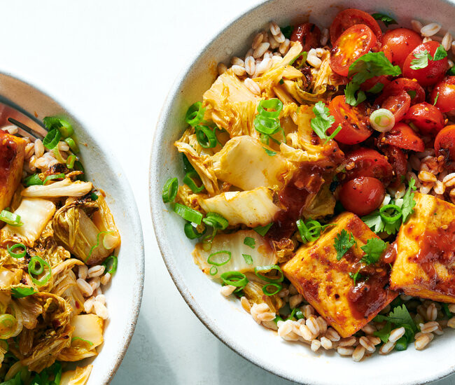 I take full advantage of both qualities in my sweet chile grain bowls with tofu, paired with caramelized cabbage and marinated juicy tomatoes. The recipe is easy and adaptable, with tangy, spicy notes that will delight both the tofu faithful and the merely tofu curious.