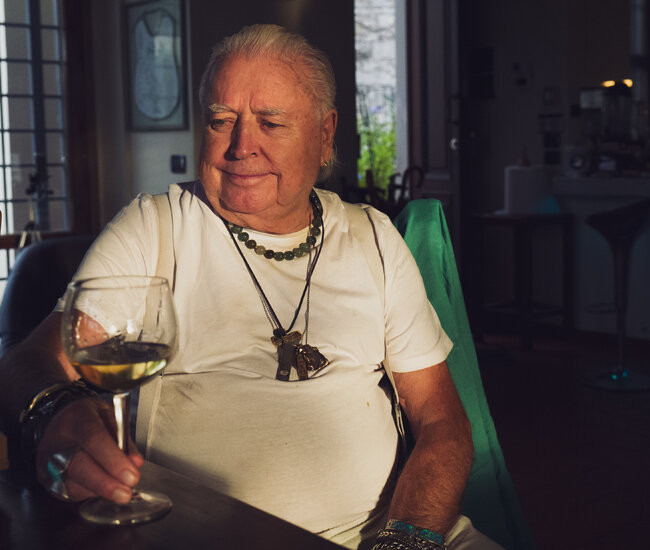 Coldplay blared as we drove to his hillside villa near Bagno a Ripoli. While he took a nap, I perused the relics of his old life: a framed letter from Barack and Michelle Obama wishing him a happy 70th birthday; some Da Silvano business cards; a portrait of him from the 1970s in Greenwich Village in which he has flowing dark hair and is riding a Honda motorcycle.