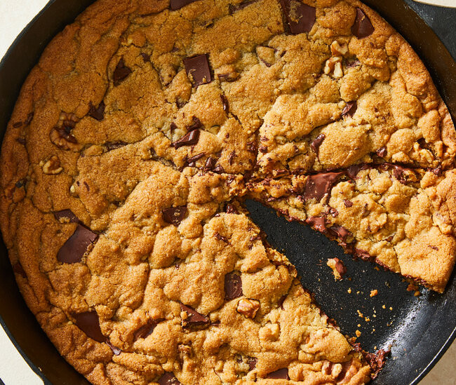 Have you ever baked a giant chocolate chip cookie in a skillet? If you haven’t, now is the time because Samantha Seneviratne’s recipe is utterly magical. Like everything she puts forth, Samantha’s giant cookie is perfectly balanced, a harmony of brown sugar, walnuts and chocolate chips seasoned with just enough salt to tame the sweetness. And smushing one giant cookie into a skillet is vastly easier and faster than forming individual cookies. It’s the kind of after-work treat that makes Monday altogether worth it.