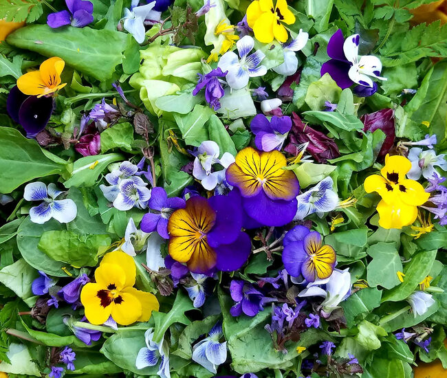 Throughout the season, edible flowers enliven Mr. Forti’s garden and cuisine: violets, chives, daylily and two species of native Monarda, among them.