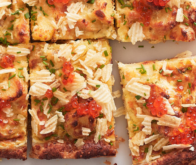 Topped with crushed potato chips, your favorite roe and more chives, it becomes a perfect party pleaser or a luxurious brunch centerpiece. (An excellent comment comes from Dawn, a reader, who writes: “I think this would also be amazing with smoked salmon and maybe a sprinkle of fresh dill.” Genius.)