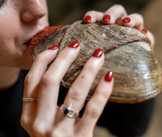 When I first had the clam flask, it was filled with a blend of tomato juice and dried-clam broth that tasted something like a virgin Caesar cocktail. The contents, though, are not what has captured everybody’s attention. The reason everybody remembers the flask is that it is tightly bound and knotted with twine, like a corset designed for bivalves with a taste for mild kink.
