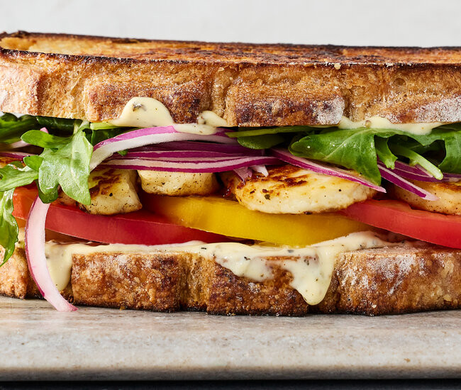 First up, the halloumi, arugula and tomato sandwich (above) from Baby Blues Luncheonette in Williamsburg, Brooklyn. It’s Jake Marsiglia’s Grecian ode to the B.L.T., with the bacon swapped out for cheese, and the iceberg for a lemony arugula salad cut through with red onions.