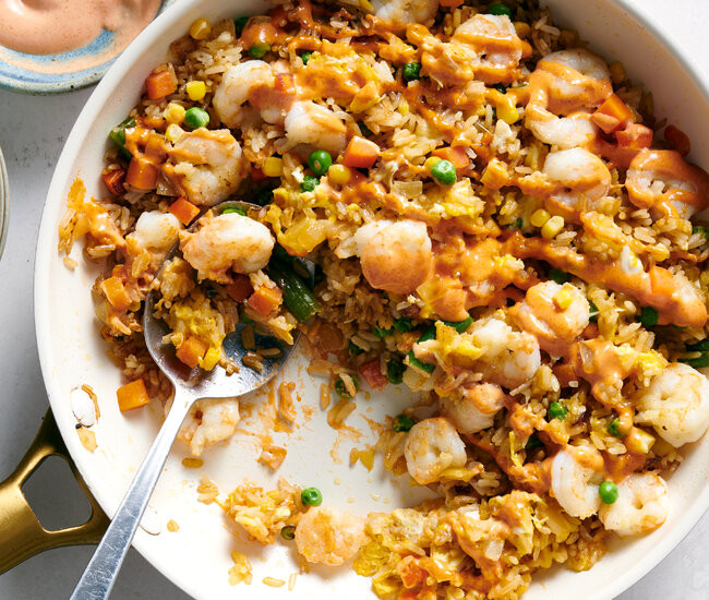 This meal is a boon to those who keep their freezers stocked: Frozen shrimp and frozen mixed vegetables (and even frozen leftover rice!) can all work wonders in this abundant recipe from Eric Kim. I swap in a bag of frozen broccoli for some of the rice and feel especially grown-up until I spend 20 minutes making the same joke: “You mean a shrimp fried this rice?” (Do not forget the yum yum sauce, equal parts delicious and versatile.)