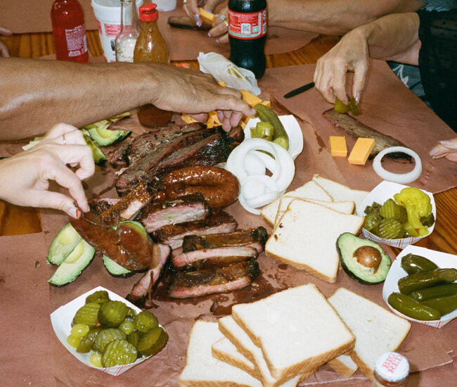 In Lockhart, a small city just south of Austin, Texas, barbecue is still the feast of choice. Anywhere friends and family meet, butcher paper unfurls to reveal a mosaic of smoked meats and pickled jalapeños, juicy links of sausage that snap into a savory crumble, nestled between foam cups of potato salad, frijoles and baked mac — and always served with a stack of white bread and warm tortillas.