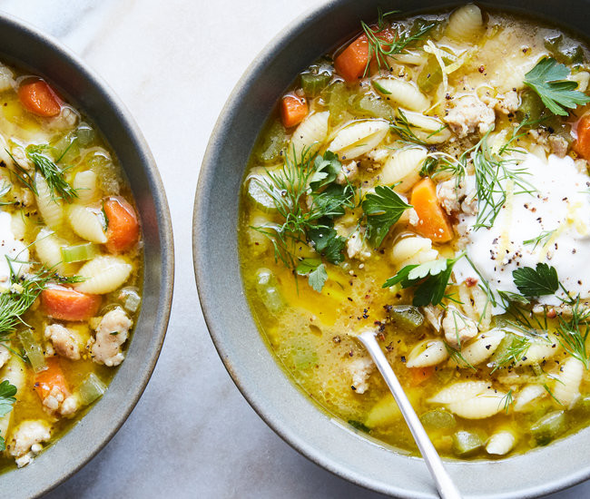 Lex’s recipe gets maximal flavor out of minimal ingredients, with ground chicken, shallot and thyme adding loads of depth without the need to simmer a broth for hours on end. We like egg noodles in our chicken soup, but you can use any small shape — cavatelli, ditalini or those adorable mini farfalle if they happen to cross your path. Brew up a batch for dinner tonight and freeze the leftovers. In sickness or in health, you’ll always be happy to have it on hand.