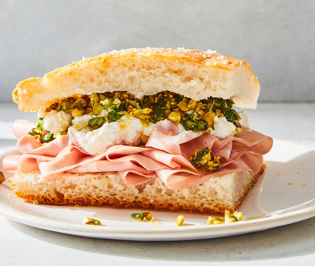 It’s delightful on its own or swiped through a soup, stew or sauce. But its best life is as a vessel for mortadella. Simply cascading slices between a split square is enough. Mr. Stabile said that if he served that classic, “my friends would love me forever.” I layered in creamy ricotta, milky sweet against the savory pork, pistachios for crunch and basil and lemon zest for freshness. With those additions, it moves from aperitivo snack to full meal.