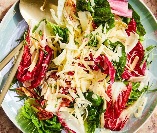 The salads of my youth, the ones I most remember, all have this effect — and they all have cheese. The contrast between cool, anchoring base note (fruit, vegetable or lettuce) and salty, creamy accent (cheese) is what makes a bite of these salads feel like more than just salad. The day I interviewed for my first food-writing job, even before getting the offer, I celebrated with a glass of rosé and a Caesar salad. A tall stack of romaine hearts, absolutely showered in Parmigiano-Reggiano and strewed with a laurel of fried parsley, was exactly how I wanted to mark that pivotal day.