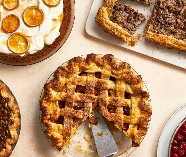 The pies are here! Four words, so much joy (and butter). This year’s batch of beauties from Claire Saffitz (above) is particularly lovely, both in the eating and the sharing: pumpkin pie with pepitas, lemon cream pie with honey and ginger, caramel apple pie, pecan slab pie and a cranberry cheesecake tart. She also has a clever new pie dough recipe, in case you can’t pull yourself or your family from one of our many other fantastic Thanksgiving pie recipes. Push up those sleeves, cube that butter and flour that bench: It’s pie time.
