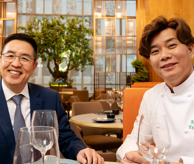 From Canal Street to Wall Street, not so far in distance, sums up the ambition behind this new restaurant from Kenny Leung, a chef, and his business partner Thomas Tang. They established their first, August Gatherings, in Chinatown nearly 10 years ago with a Cantonese menu that had some creative twists. This time, they’re doubling down, adding additional global influences in a more formal setting and calling the food modern Cantonese. Mr. Leung, a native of Guangzhou who came to New York in 1988, pays homage with dishes like salt-baked chicken, several abalone preparations, fried rice with roasted eel, and Hong Kong style noodles with fish maw. But he will also be adding black truffles to his Cantonese shrimp dumplings, tossing octopus with fusilli, and using balsamic vinegar. Equipment like sous vide is also in his arsenal. “I’m preserving the integrity of Cantonese food but adding international ingredients and techniques,” he said. Among the desserts, he has successfully crossed the classic Chinese egg tart with the Portuguese nata, a similar confection that’s popular in Macau, and which he’s been serving at August Gatherings. Michael Goff, the beverage director, has assembled a tight list that starts at $50 but, with an eye on Wall Street, climbs to a $2,000 Burgundy. The restaurant’s fancy street entrance is next to the modest-looking Courtyard by Marriott, which houses the restaurant on its second floor. The large, airy, well-windowed space seating 168 in a main room and smaller private rooms, is fitted with banquettes and tables in quietly elegant tones of beige and salmon, with fake greenery and flowers and real Chinese ceramics. (Opening Monday)
