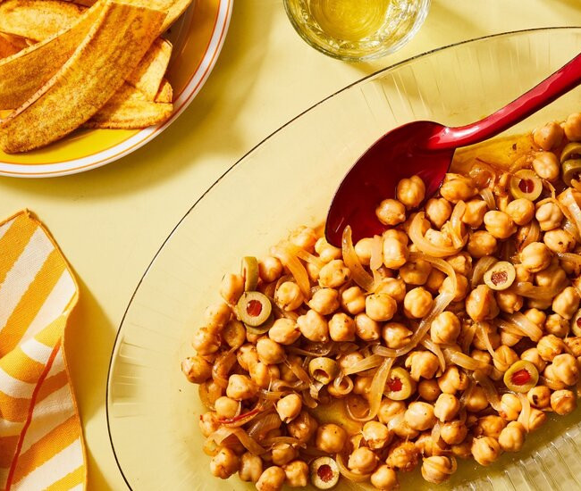 In her own kitchen, she likes to use beans as the star ingredient: plump chickpeas or gandules (pigeon peas), a hardy local crop that slows erosion and grows easily in times of drought — something we should eat because it’s good for the planet, although Kennedy says with a laugh, “I try not to be pedantic.” And it’s delicious, too. She adds Spanish stuffed olives before serving, for extra richness. The beans are meaty enough to sate and at the same time small enough to scoop up with a chip, or, as Kennedy prefers, to be spooned, almost daintily (“like caviar,” she says), onto a delicate, whisper-thin strip of crisped plantain, hot from the skillet.