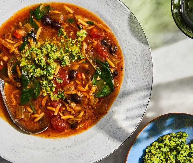 It’s a real conundrum, and I don’t think it has to do with the general size of the American appetite compared with the British one. Jess tested this minestrone right before the holiday season, when eyes are normally much bigger than tummies. Waiting for certain festive foods to arrive — in my world, matzo balls, latkes, roasted turkey and stuffing — lifts them to ridiculous heights of desirability. It also just makes me hungry.