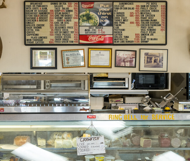 The restaurant takes up about half the building, and the family’s Italian immigration roots are all over the menu. There are grits and burgers, but also a rigatoni plate lunch and a po’ boy (their own invention) made with deep-fried balls of chopped black olives, shredded mozzarella and seasoned breadcrumbs bound together with a little mayonnaise and ranch dressing. Canvas-wrapped logs of seasoned, salted pork loin called lonza cure in the beer cooler.