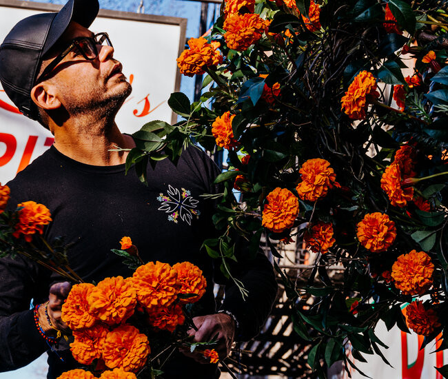 He started Floratorium in 2014, realizing that in the Instagram age, he could help businesses by creating pretty floral backdrops that customers could pose in front of. Their social media posts would be free advertising.