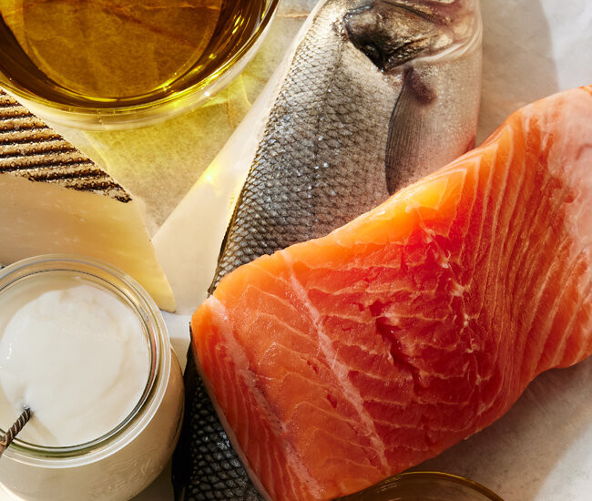 Fresh or frozen fish like salmon, tuna, mackerel and cod